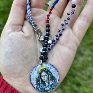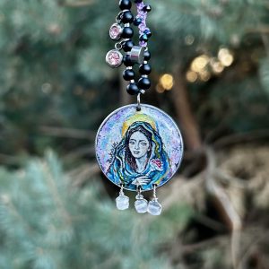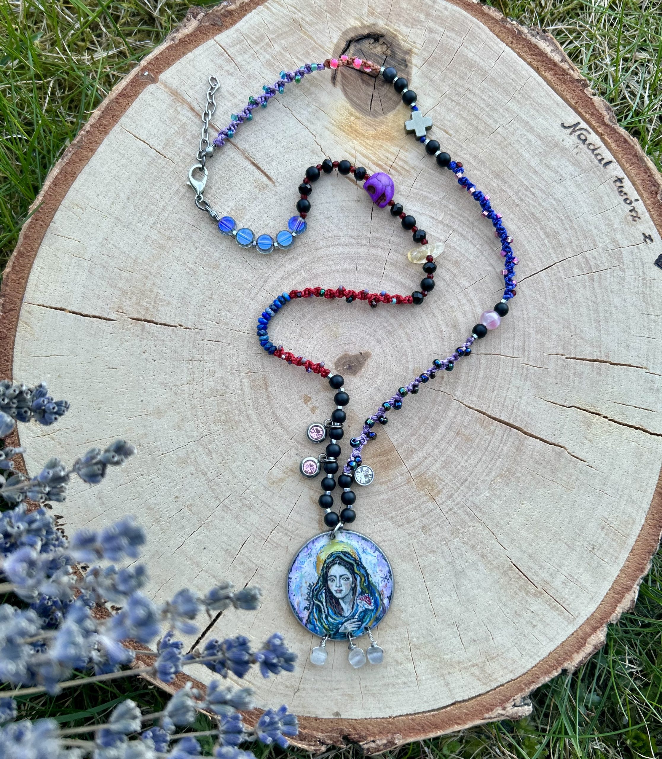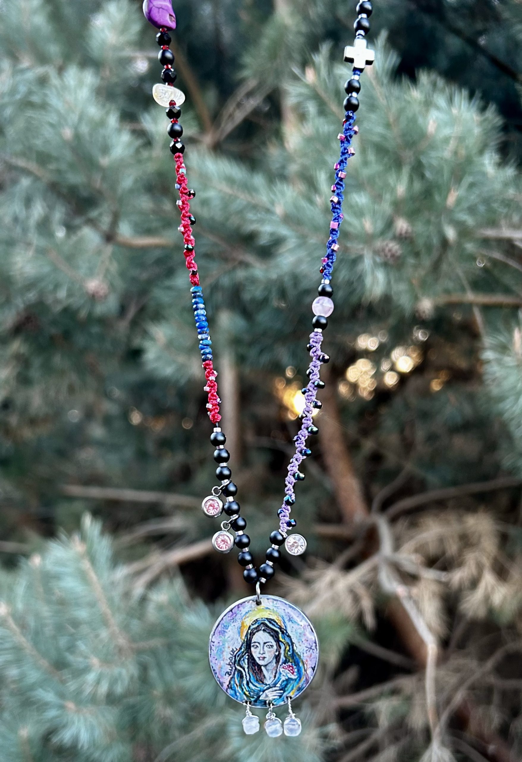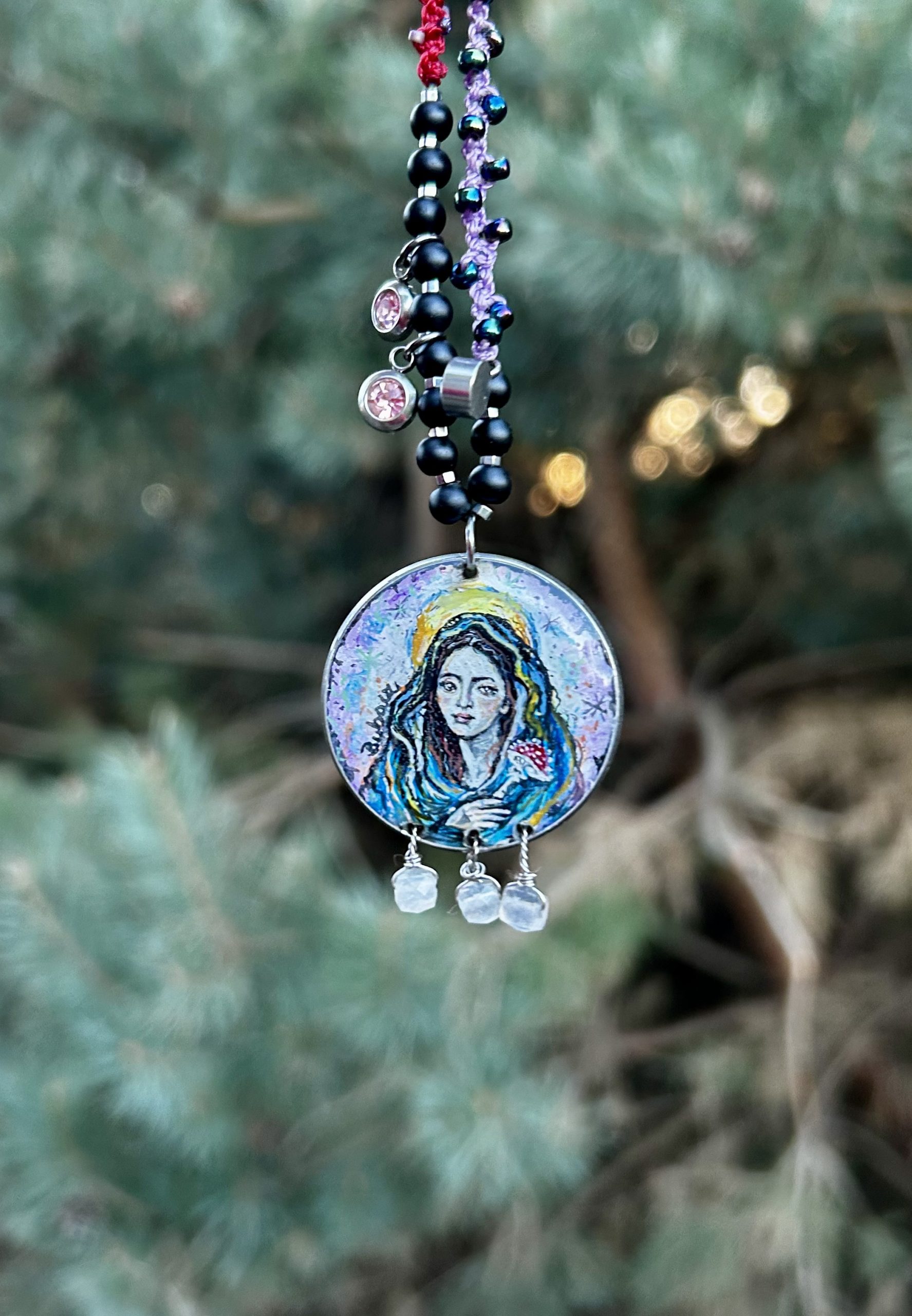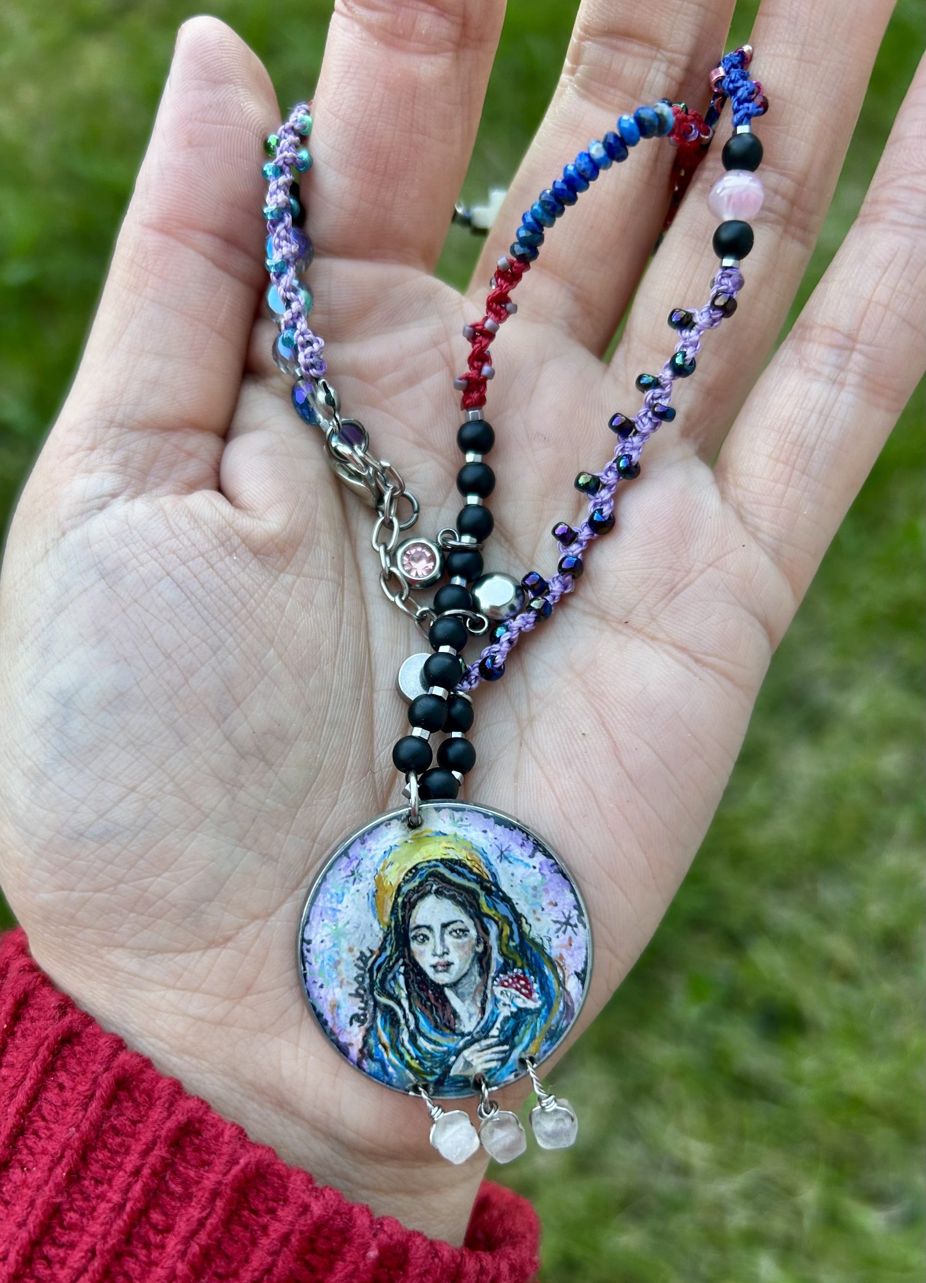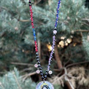 Ręcznie malowana zawieszka z kolorowym naszyjnikiem. Pozostałe elementy w całości wykonane z antyalergicznej stali chirurgicznej.